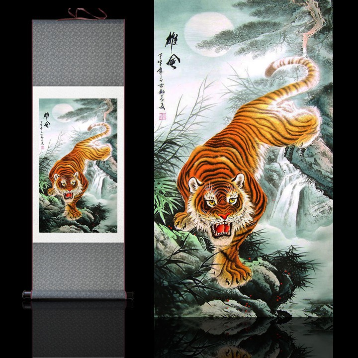 安泰 絲綢畫卷軸畫風水掛畫下山虎鎮宅消災發財虎可定制雄風猛虎圖 蝦皮購物